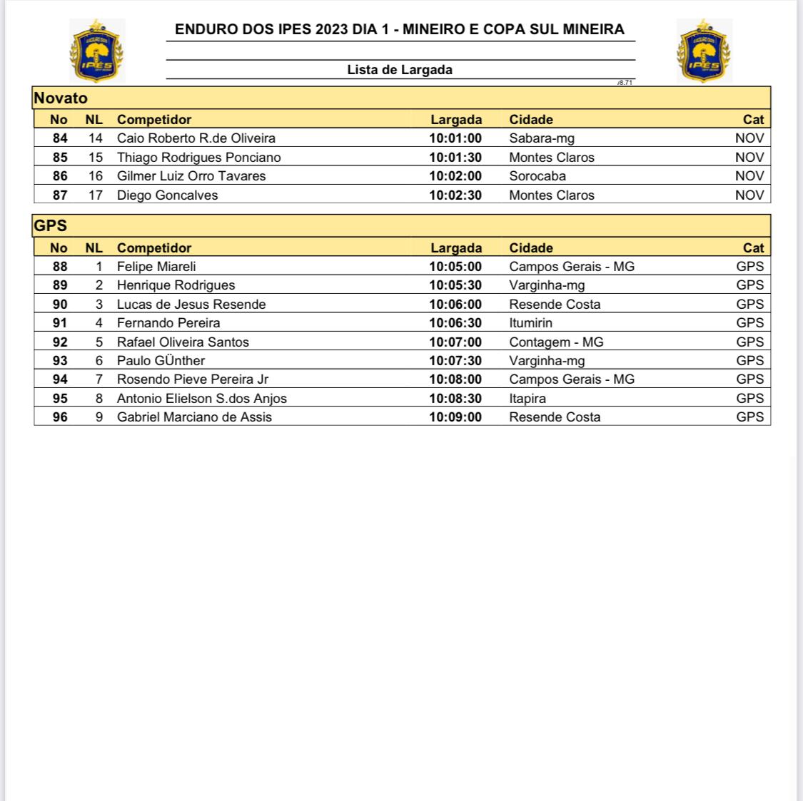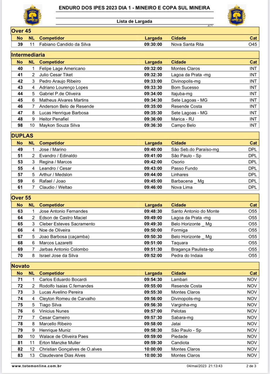 Confira a ordem de largada do sábado, dia 1 do 23º Ipês Off Road.